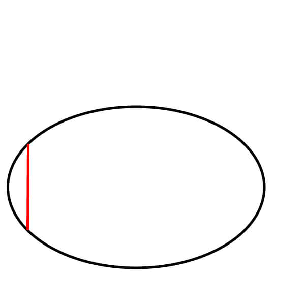 Dibuja una línea vertical en el lado izquierdo del óvalo, ligeramente curvada para seguir su contorno.