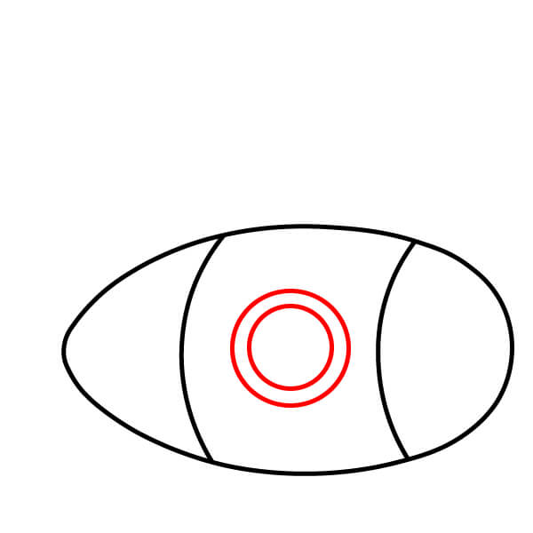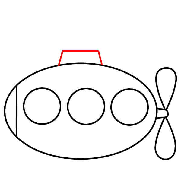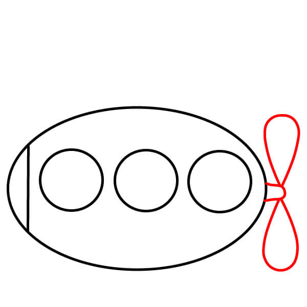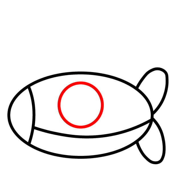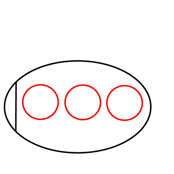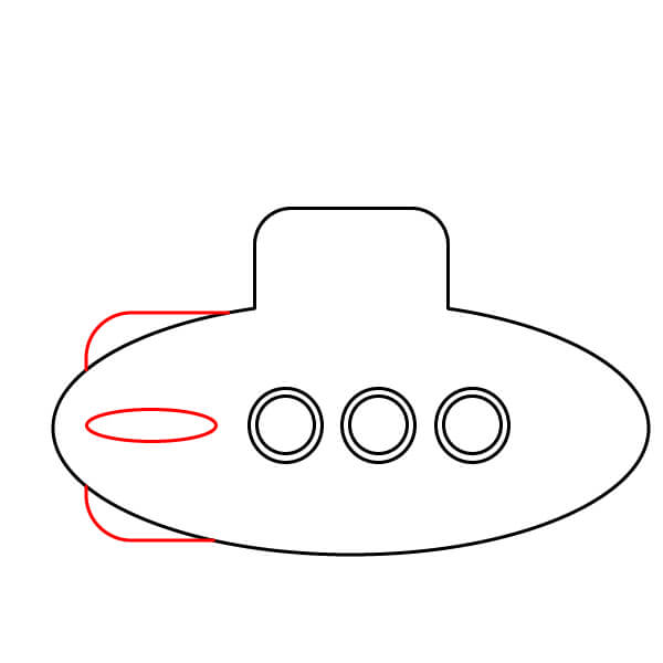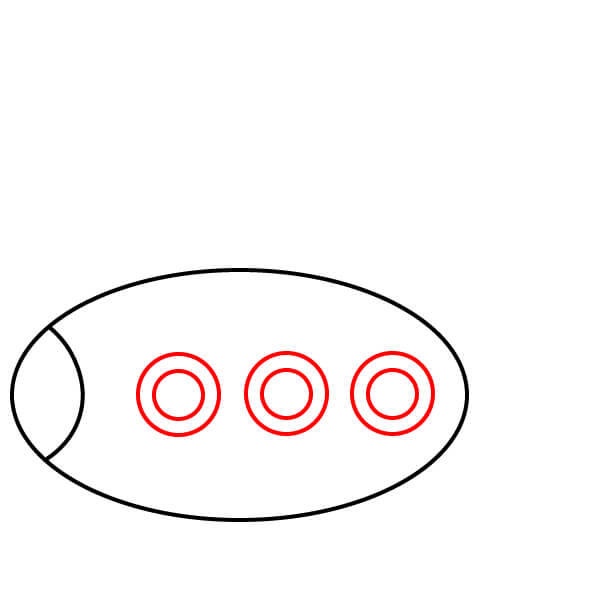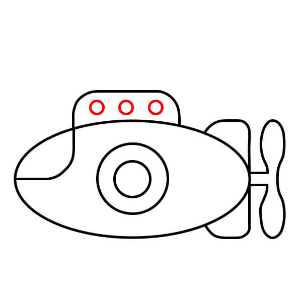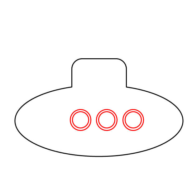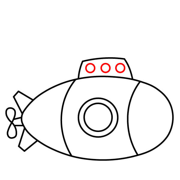 Dibuja tres círculos concéntricos horizontales en el centro del óvalo, que representan las ventanas del submarino.