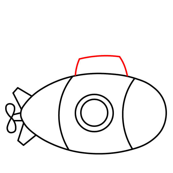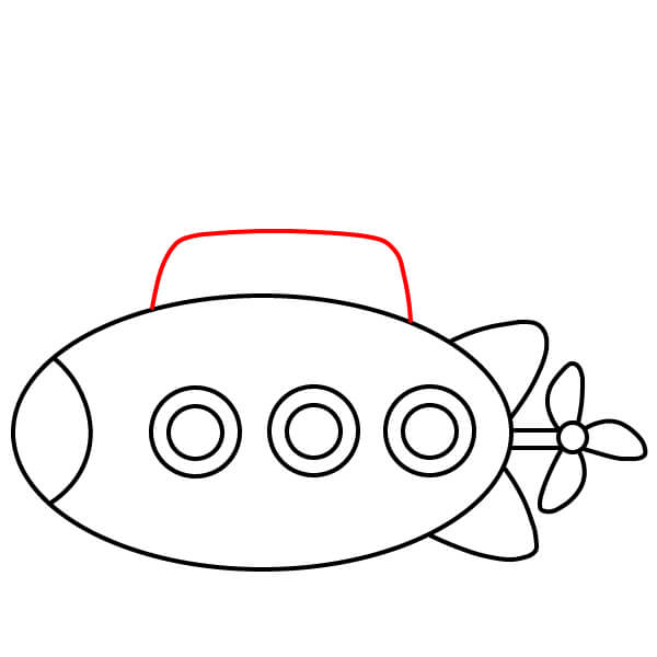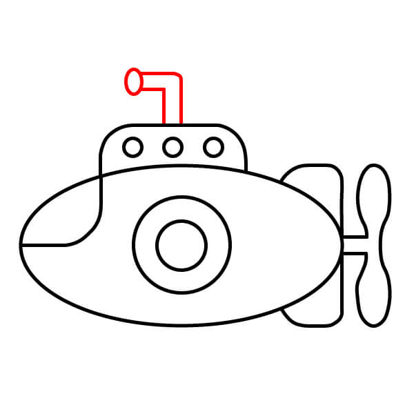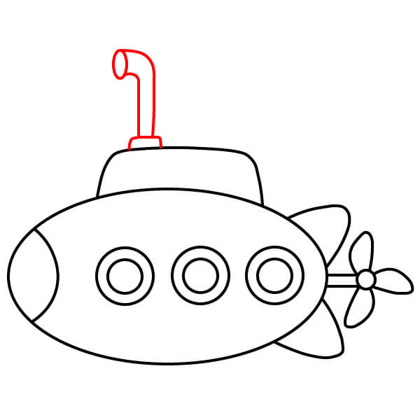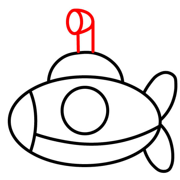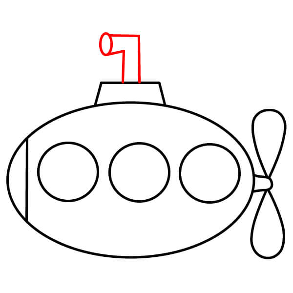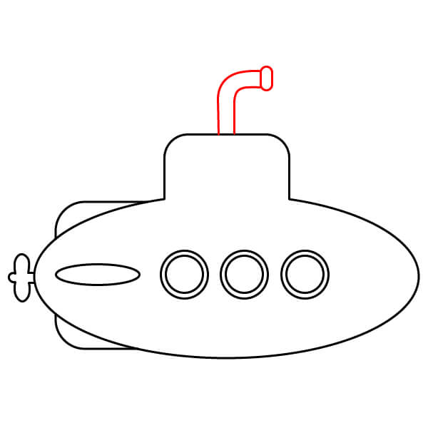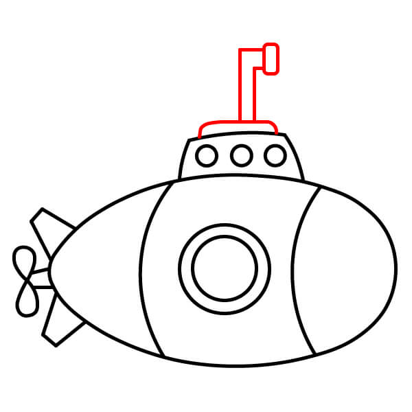 En la parte superior de la torre de mando, dibuja un periscopio. Este será un tubo curvo con un pequeño extremo redondeado.
