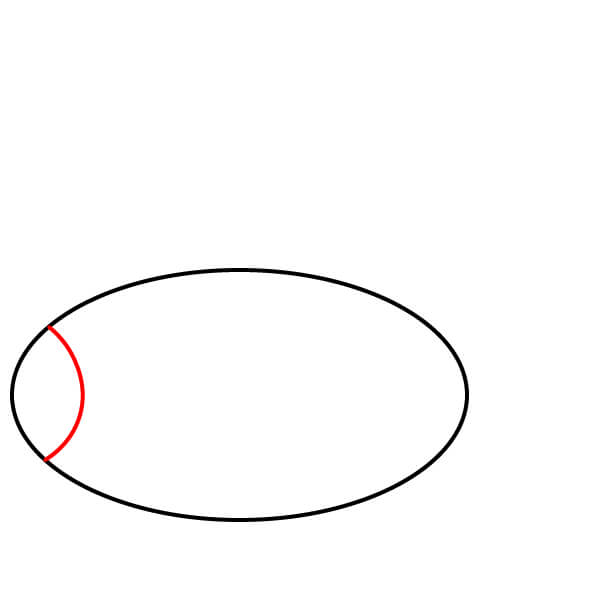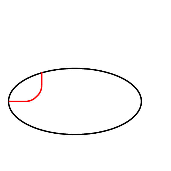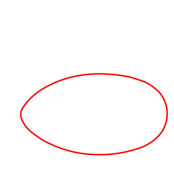 Comienza dibujando un óvalo horizontal, ligeramente puntiagudo en el extremo izquierdo.