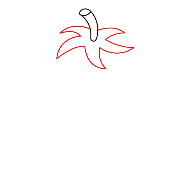 Empieza dibujando cinco hojas puntiagudas sobre el tomate. Estas forman el follaje.