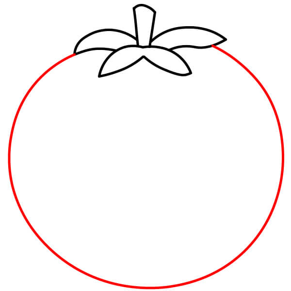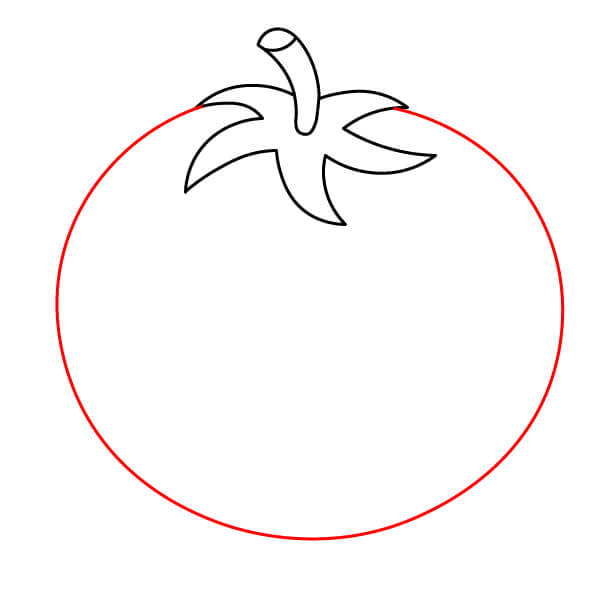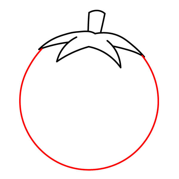 Dibuja un círculo grande para el cuerpo del tomate.