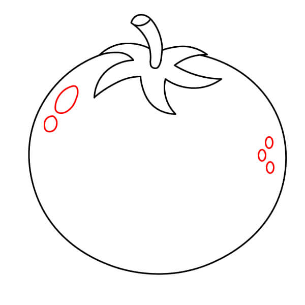 Añade unos óvalos pequeños para representar las gotas de agua en el tomate.