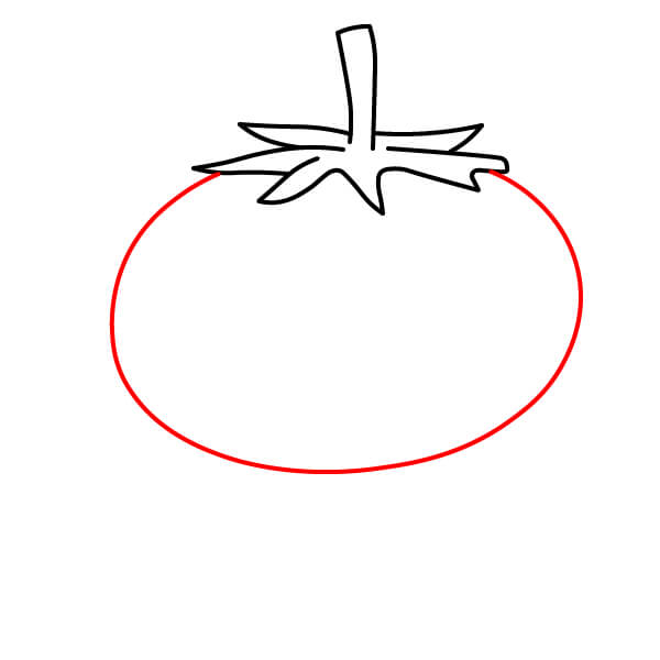 Dibuja el cuerpo redondeado del tomate.