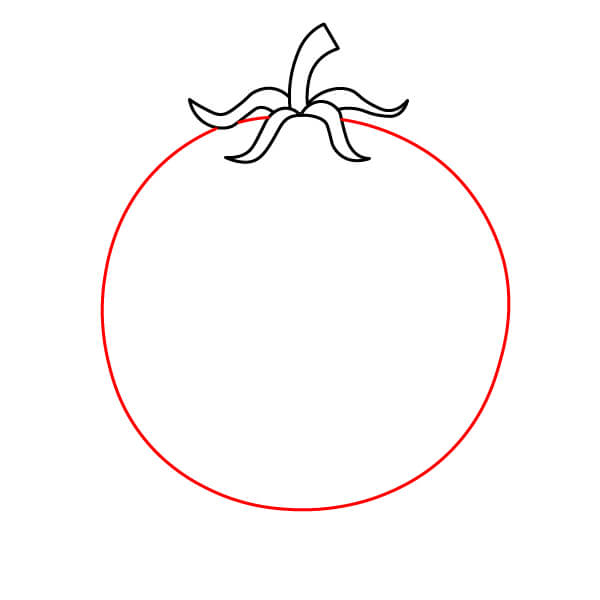 Dibuja bordes dentados alrededor del tallo para crear el cáliz del tomate.