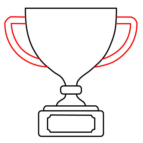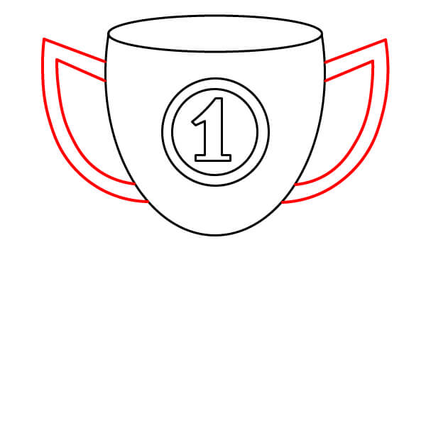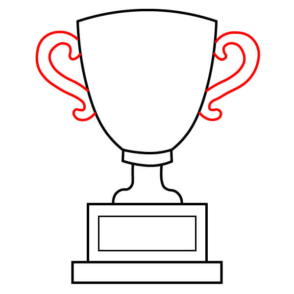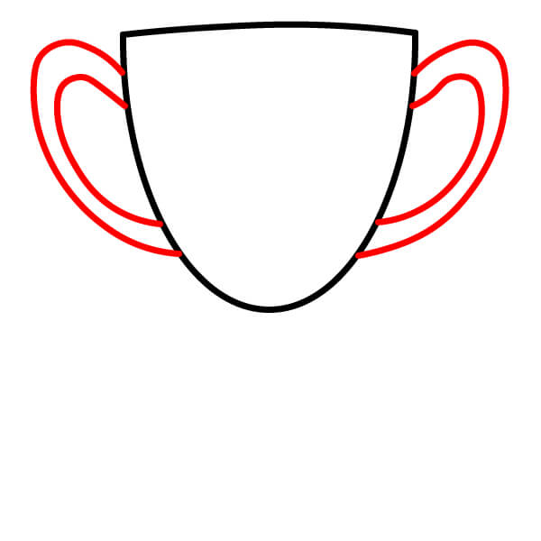 Dibuja el asa del trofeo. Dibuja dos formas curvas que se extiendan hacia afuera desde los bordes del trofeo, simétricamente.