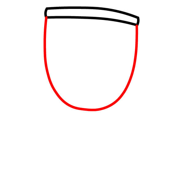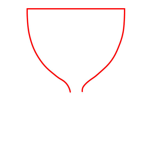 Dibuja la forma principal del trofeo. Partiendo de los dos extremos de la línea dibujada en el paso 1, dibuja dos curvas que desciendan y se inclinen ligeramente hacia adentro, uniéndose en la parte inferior redondeada.