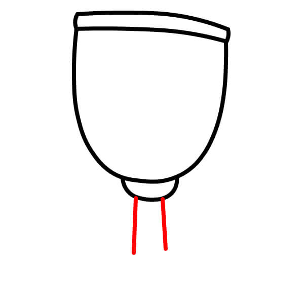 Dibuja la parte superior del tallo del trofeo. Debajo de la pequeña curva, dibuja dos líneas verticales paralelas que desciendan.
