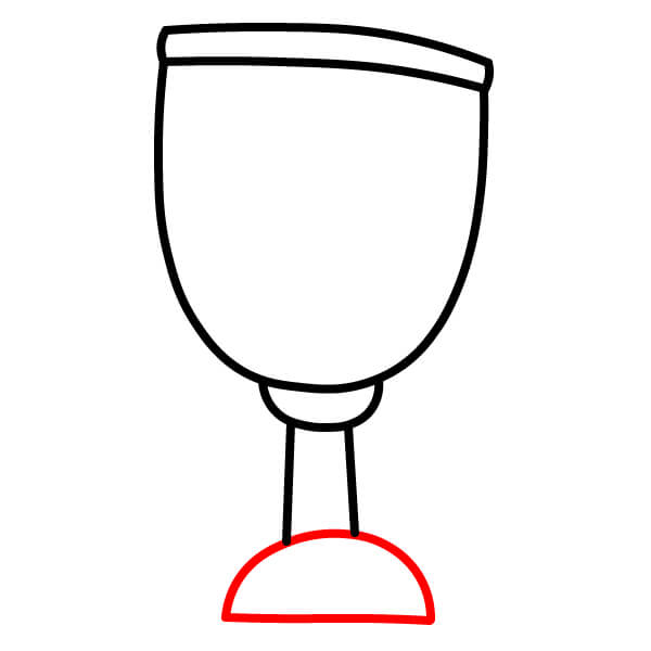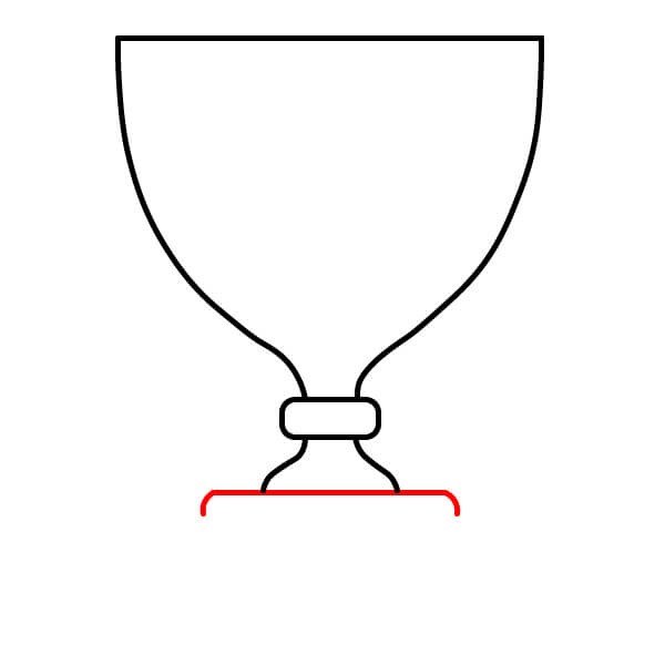 Dibuja la parte superior del tallo del trofeo. Sobre la base, dibuja dos líneas curvas que se ensanchen hacia afuera. Une los extremos de estas dos líneas con una pequeña curva.