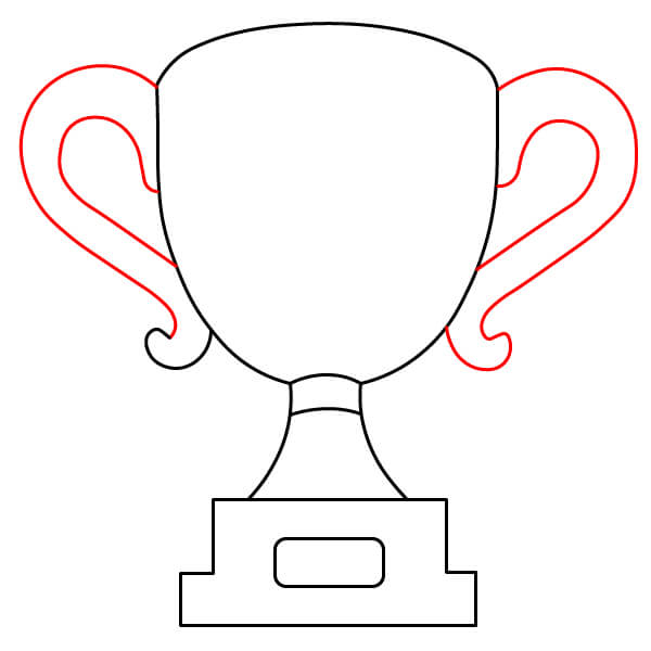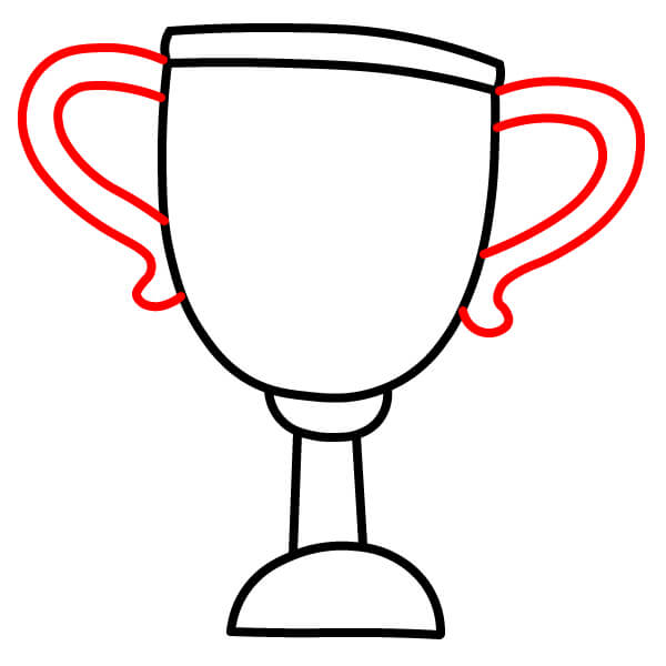 Dibuja dos asas a cada lado del trofeo. Cada asa debe ser un óvalo curvo que se conecte a los lados del trofeo. Dibuja una línea paralela dentro de cada asa para crear grosor.