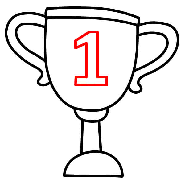 Añade el número “1” en el centro del trofeo. Dibuja un número uno grande.