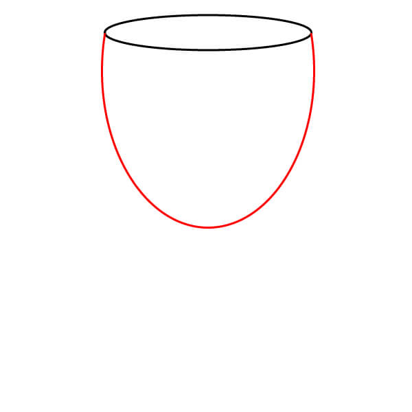 Dibuja los lados del trofeo. Partiendo de los dos extremos del óvalo, dibuja dos curvas descendentes que se unan en un punto circular. Agrega una línea horizontal que conecte los dos extremos inferiores del óvalo para formar la boca del trofeo.