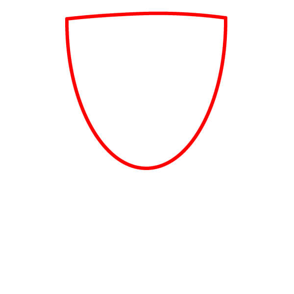 Dibuja el cuerpo principal del trofeo. Debe tener forma de escudo, con la parte superior plana y la inferior curva.