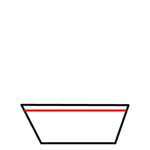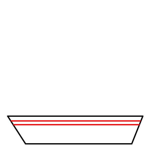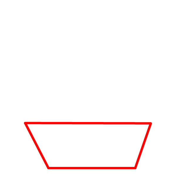 Paso 1: Dibuja un trapecio para el casco del barco. Haz que la línea horizontal de arriba sea un poco más ancha que la de abajo.