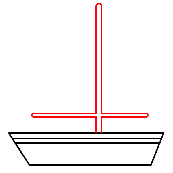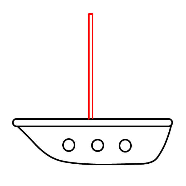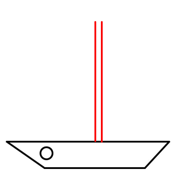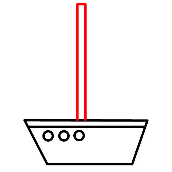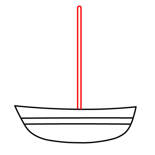 Paso 3: Dibuja una línea vertical desde el centro del borde superior del barco hacia arriba. Este será el mástil.