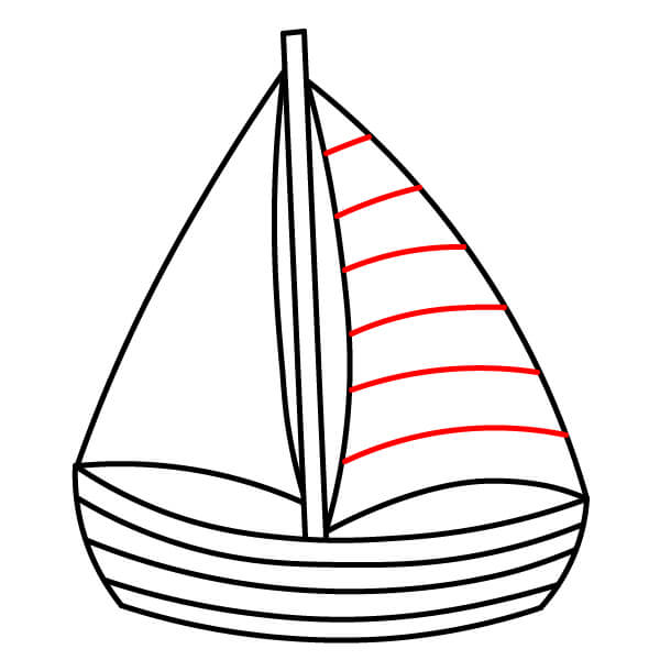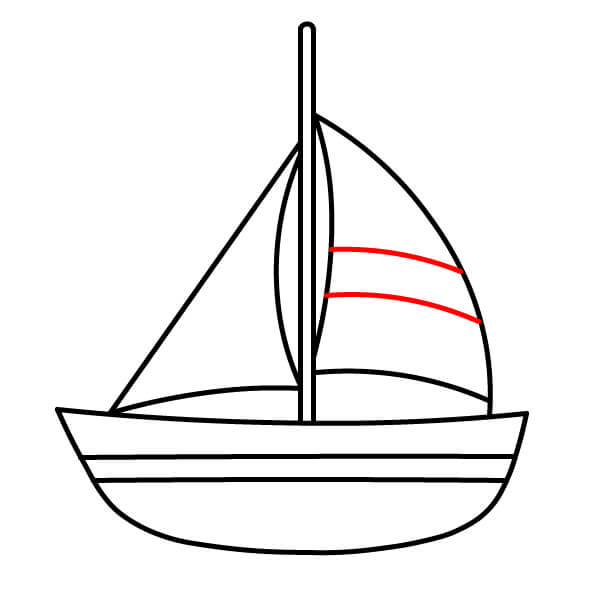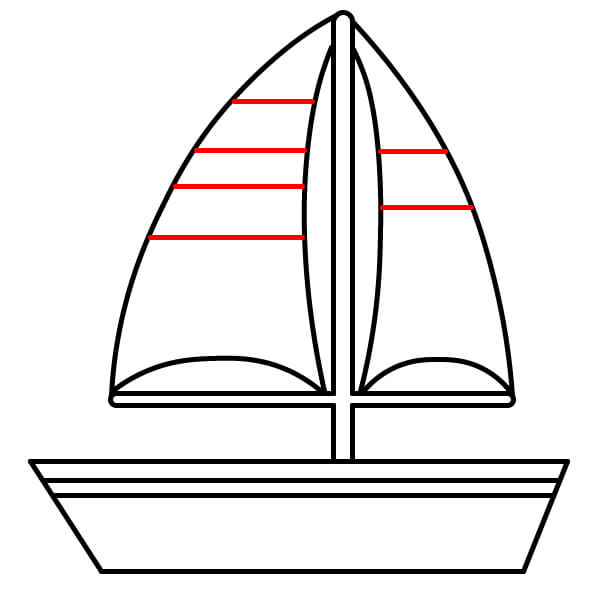 Paso 6: Agrega dos líneas horizontales en la vela delantera y una sola línea horizontal en la vela trasera para crear franjas.