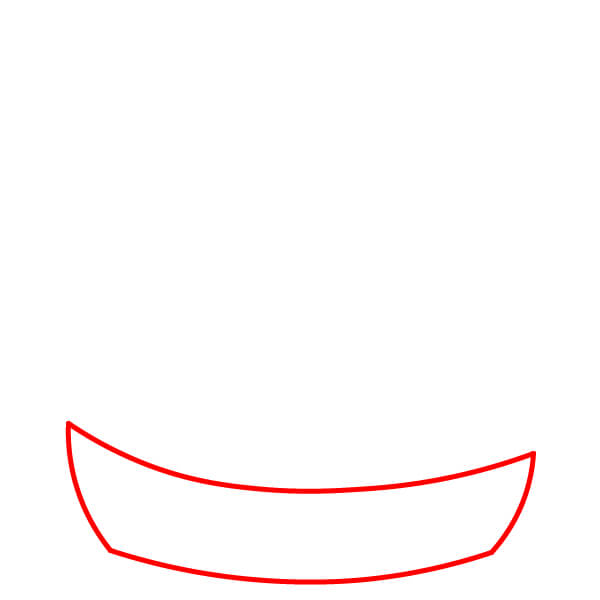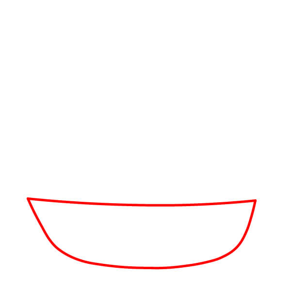 Paso 1: Dibuja una línea curva para el borde superior del casco del barco. Debajo de esta, dibuja otra línea curva para formar la parte inferior del casco y conéctala con la línea superior usando dos líneas verticales o ligeramente inclinadas en los extremos.