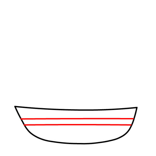 Paso 2: Agrega dos líneas horizontales paralelas a lo largo de la parte media del casco del barco como decoración.