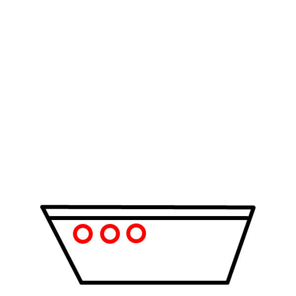 Paso 3: Dibuja tres círculos pequeños en el costado del barco, espaciados de manera uniforme, para representar los ojos de buey o ventanas.